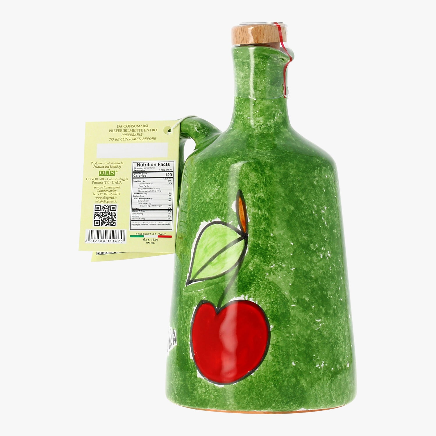 Huile d'olive vierge extra, extraction à froid des olives italiennes de la variété Nocerella del Belice
