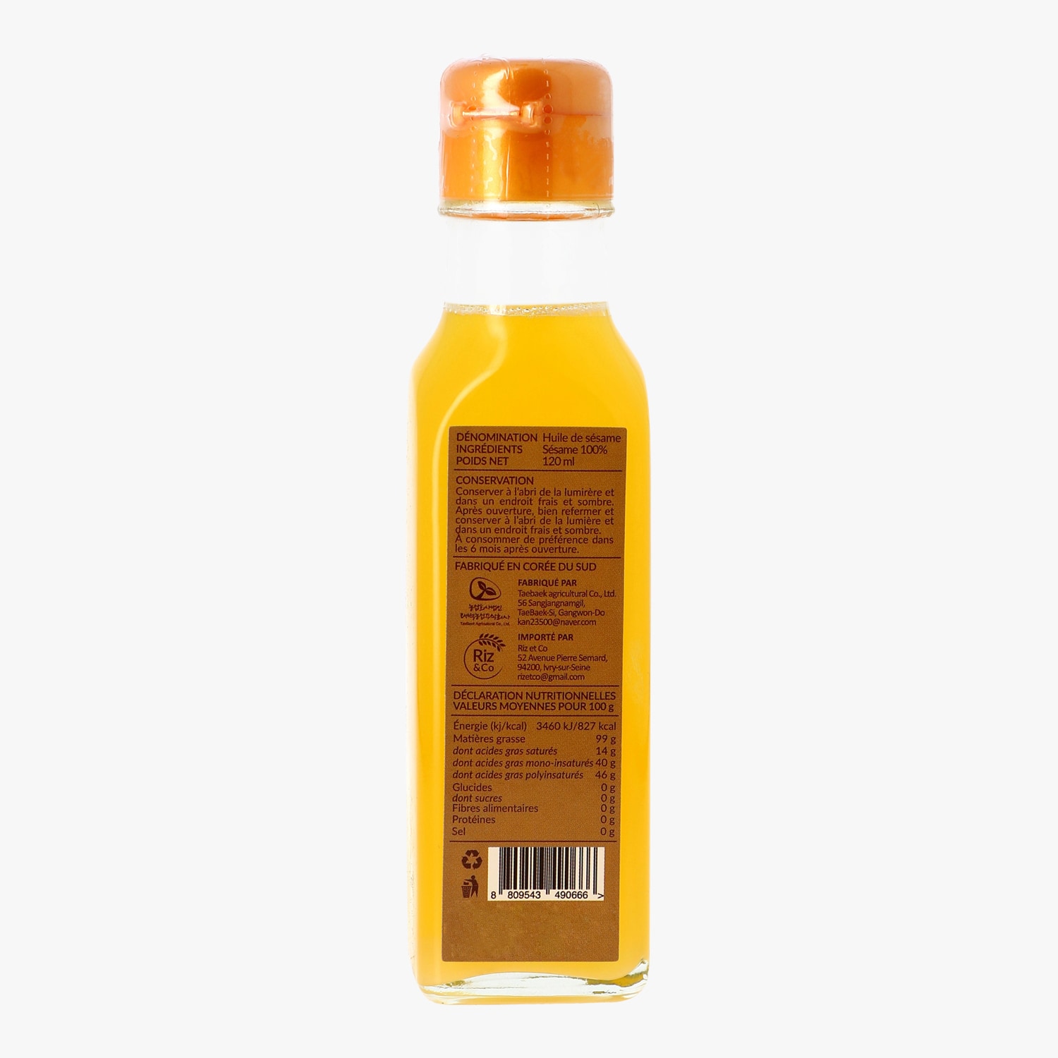 Huile de sésame - Corée du Sud - Pressée à froid Taebaek Agricultural