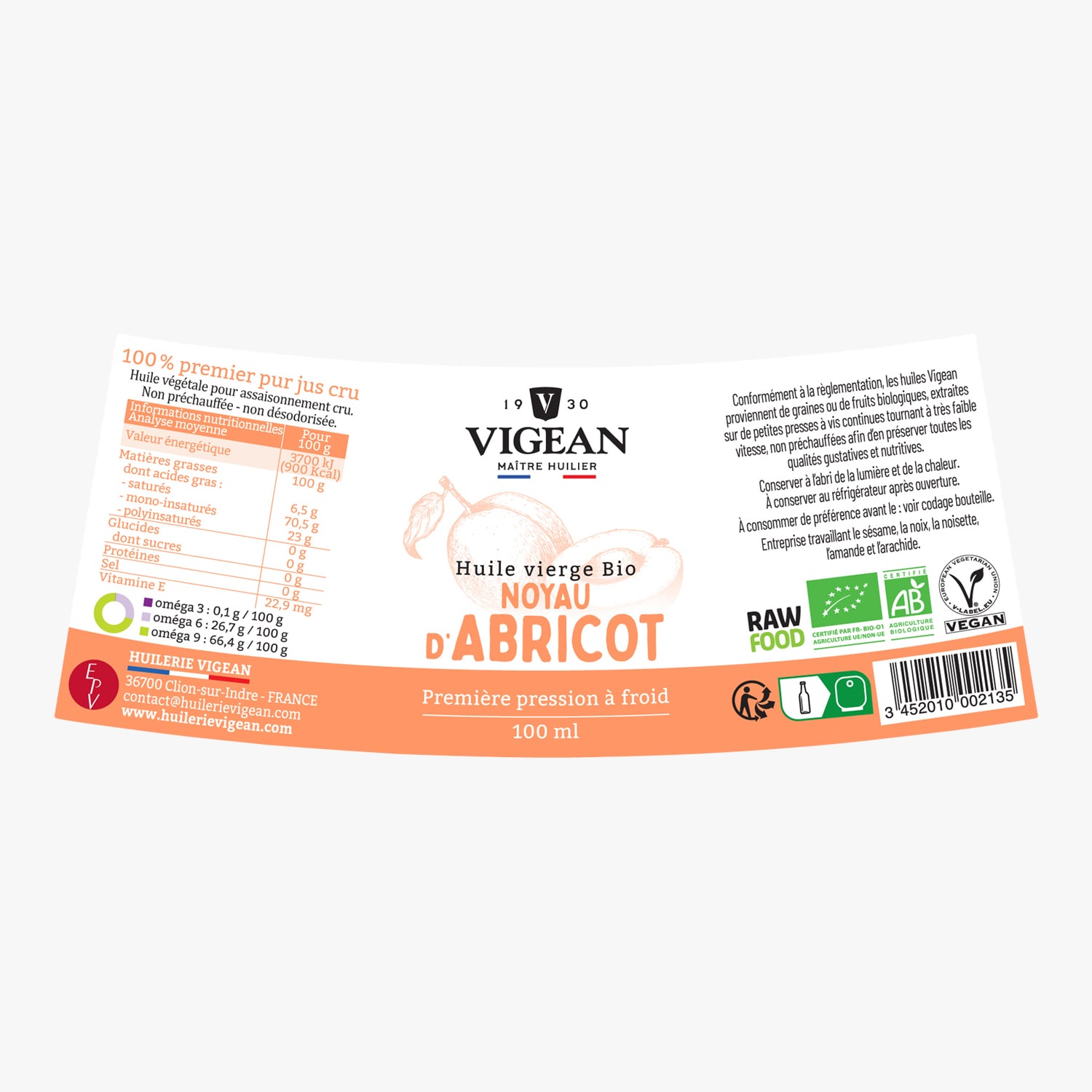 Huile vierge bio noyau d'abricot Vigean