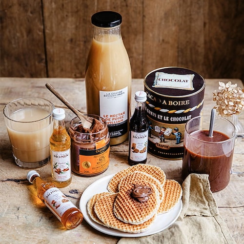Quoi de mieux que de se retrouver au coin du feu pour une pause sucrée après une bonne journée. Le goûter à la montagne est un moment convivial et chaleureux. Les gaufres pur beurre de La Grande Épicerie de Paris, moelleuses au cœur et craquantes sur les bords sont les incontournables pour un goûter réussi. Ces gaufres s’accompagnent idéalement avec une tasse onctueuse de chocolat chaud aux saveurs délicates Bonnat, ainsi qu’avec une pâte à tartiner Cluizel composée de 42% de noisettes à la texture lisse et moelleuse. Pour ajouter une touche délicate de fraîcheur, un savoureux nectar de poire William se mariera merveilleusement avec ces saveurs chocolatées.