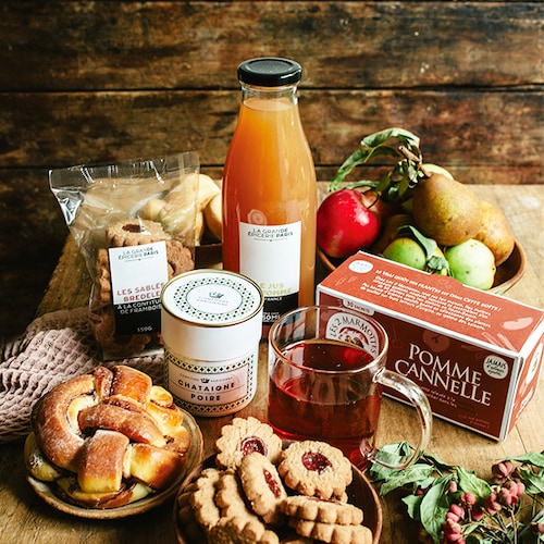 Pour accompagner vos délices automnaux, nos experts ont sélectionné avec soin des produits de saison qui raviront vos papilles. Laissez-vous tenter par les jus de fruits gourmands de notre Collection, ou accordez-vous une pause sucrée avec les tisanes Les 2 Marmottes, idéales lors de doux après-midi pluvieux. Poursuivez votre expérience gustative avec notre assortiment de confitures aux alliances audacieuses, comme la surprenante préparation de fruits châtaigne et poire de Confiture Parisienne.