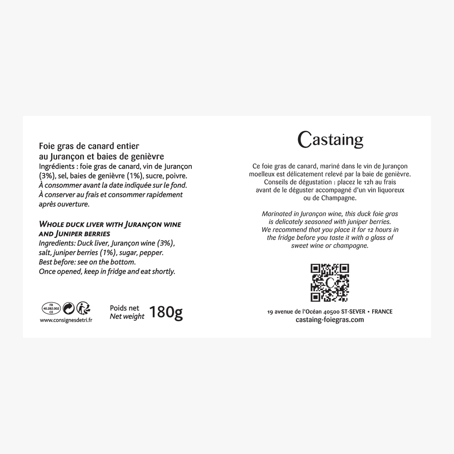 Foie gras de canard entier au Jurançon et baies de genièvre