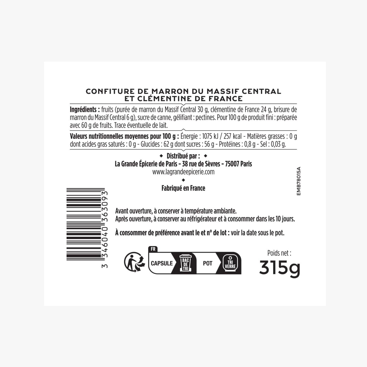 Confiture de marron du massif central et clémentine de France