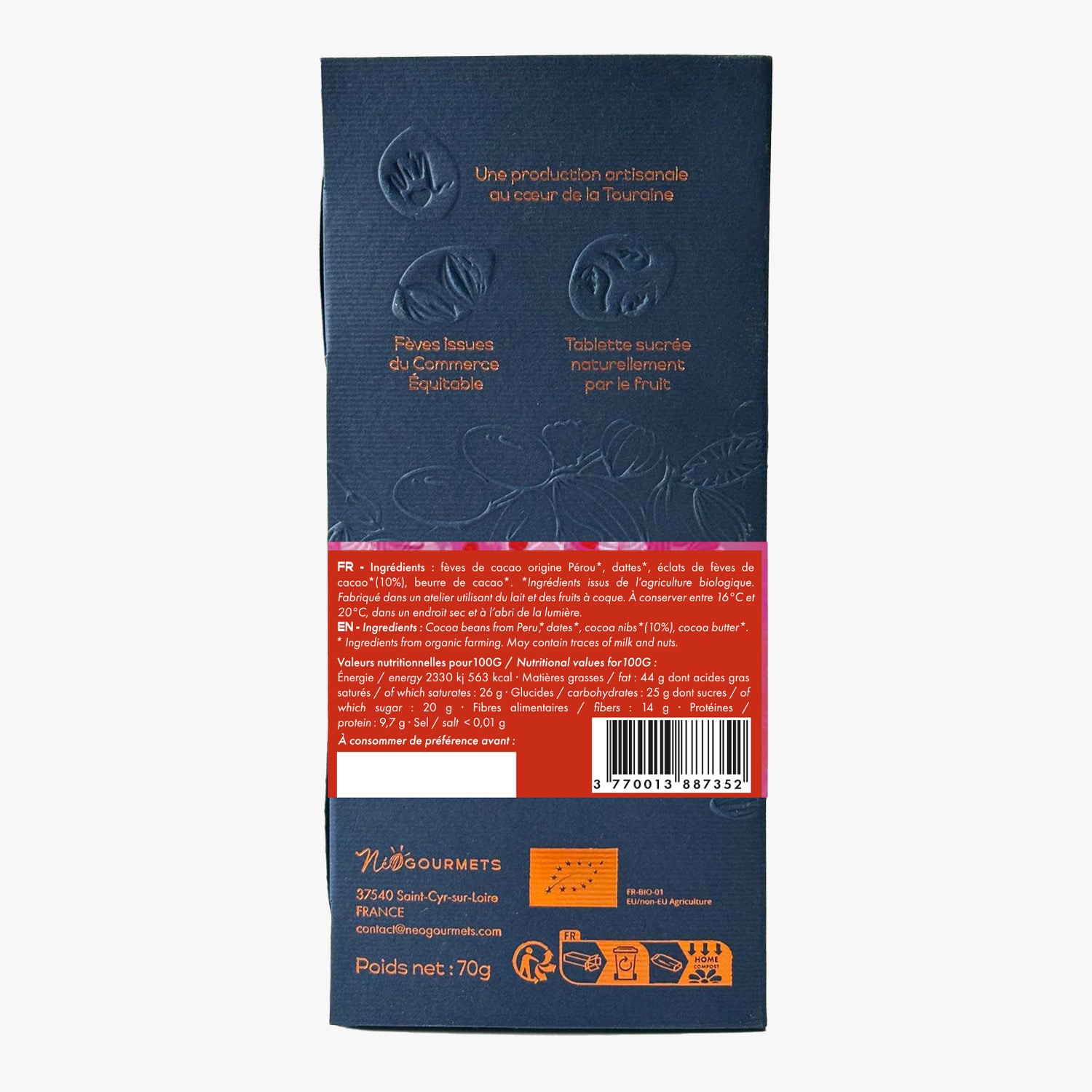 Chocolat sans sucres ajoutés - Pérou - Noir 70 % - Éclats de fèves Néogourmets