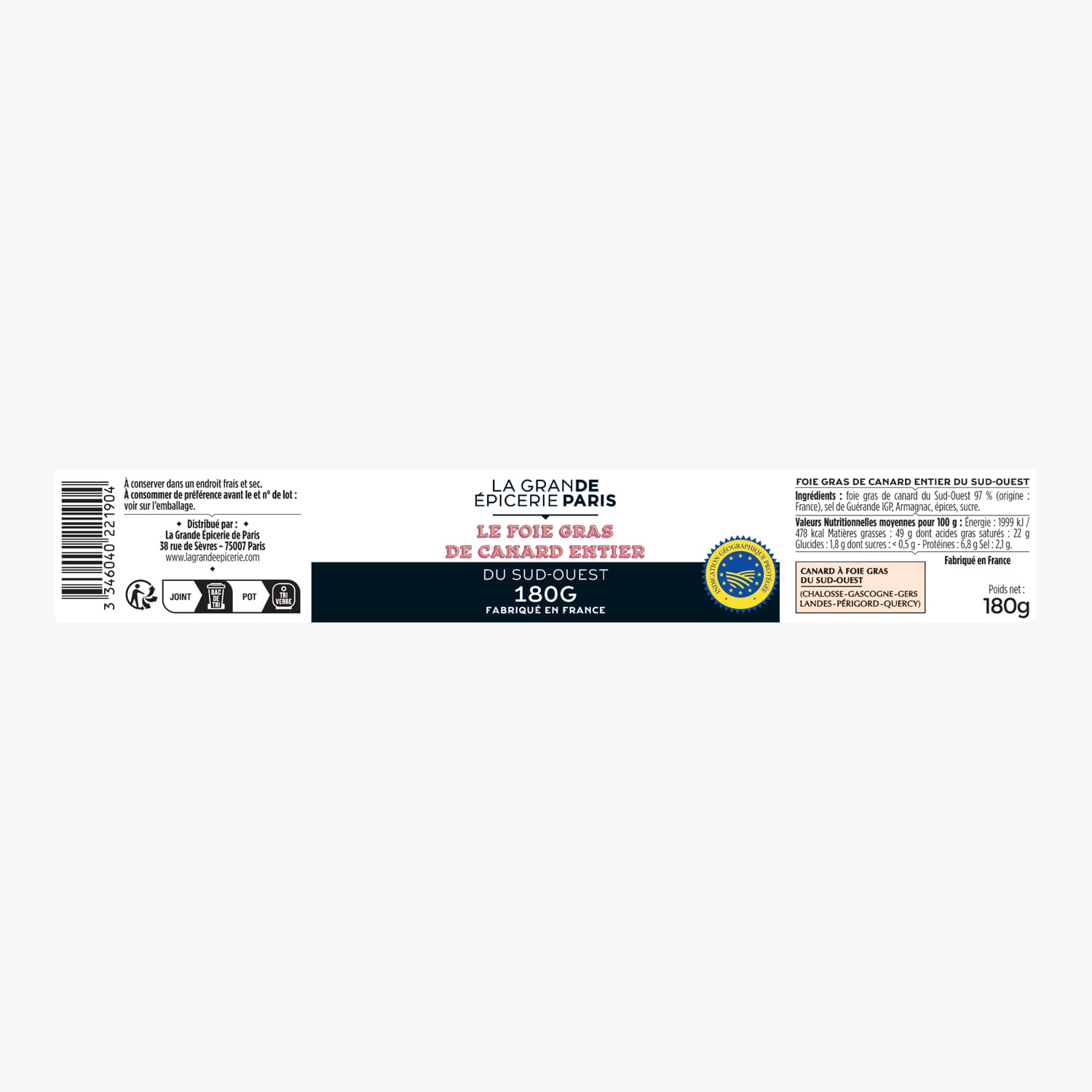 Le foie gras de canard entier du sud-ouest IGP, 180 g