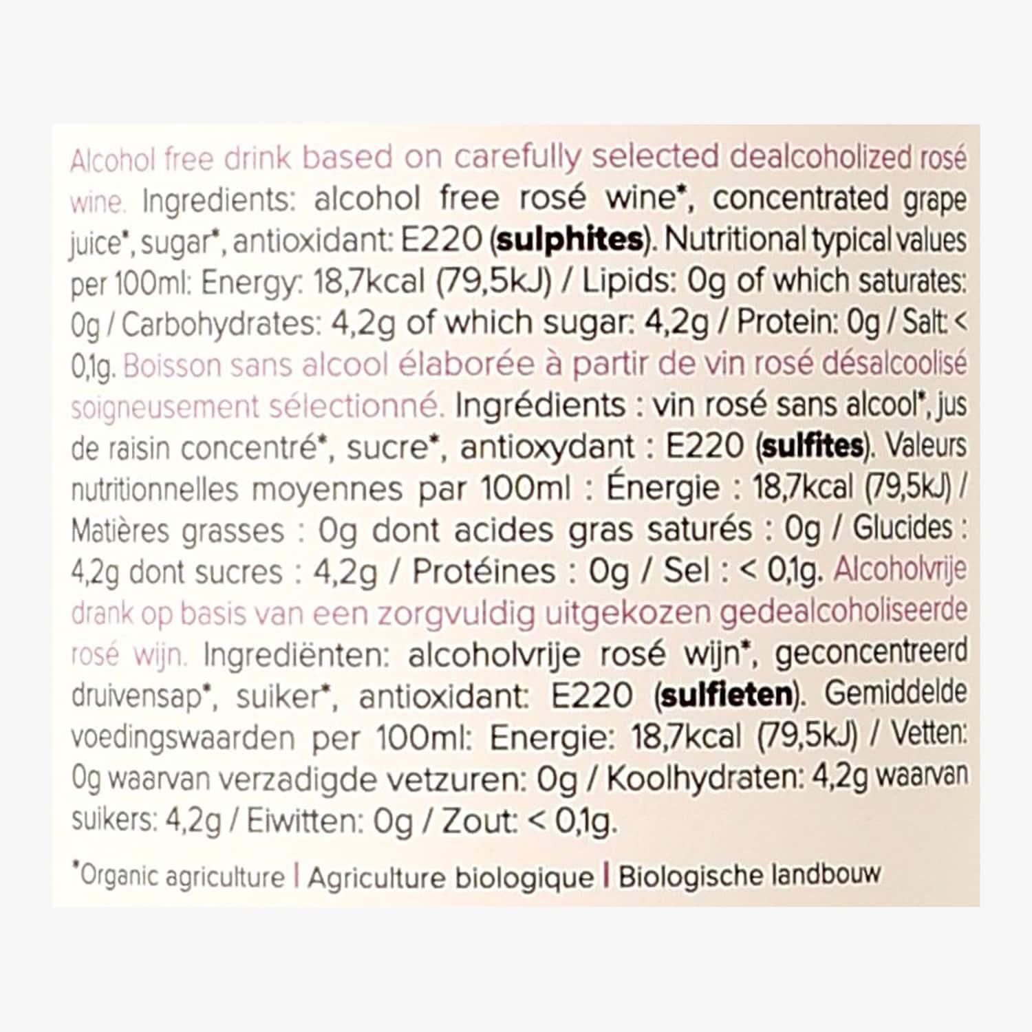 Boisson sans alcool élaborée à partir de vin rosé désalcoolisé
