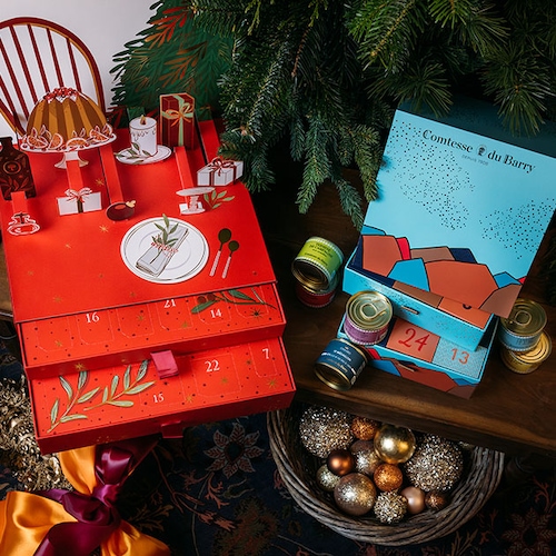 Vos apéritifs prendront des airs de fêtes en décembre ! La comtesse du Barry propose cette année un élégant coffret dans lequel sont présentés les indispensables pour un apéritif gastronomique : outre les traditionnels foies gras de canard, pâtés campagnards et autres rillettes, les becs salés pourront se délecter de chutney de figues ou confit d'oignons.