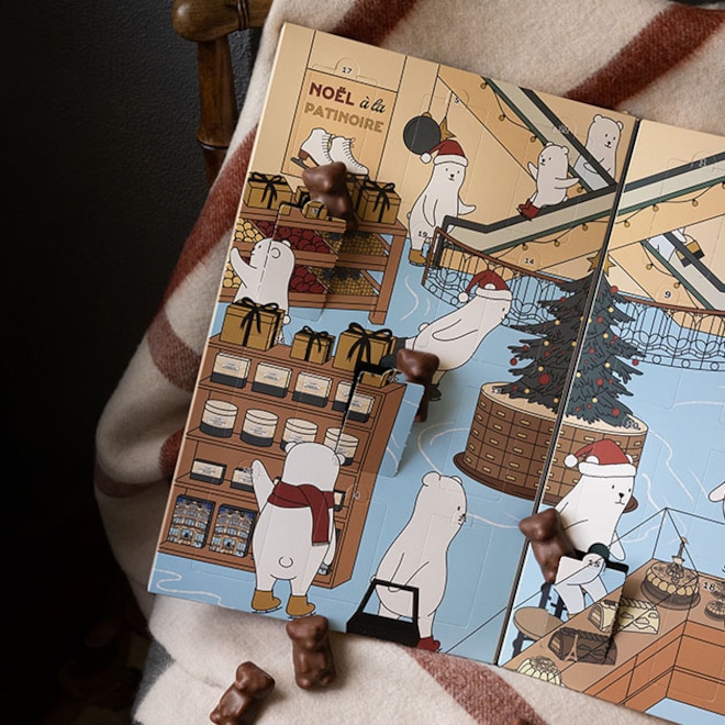 Pour accompagner un chocolat chaud, ou simplement pour un petit plaisir dans la journée, nous vous proposons une sélection de calendriers de l’Avent gourmands réunissant les confiseries incontournables de chaque maison.