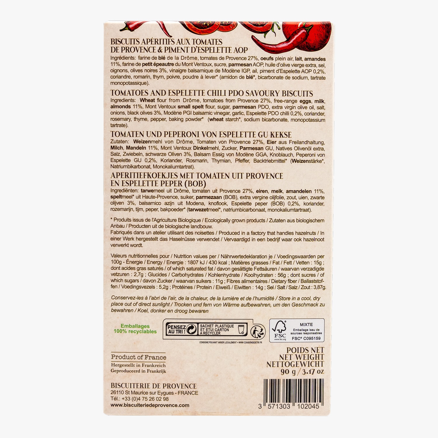 Biscuits apéritifs aux tomates de Provence, piment d'Espelette AOP