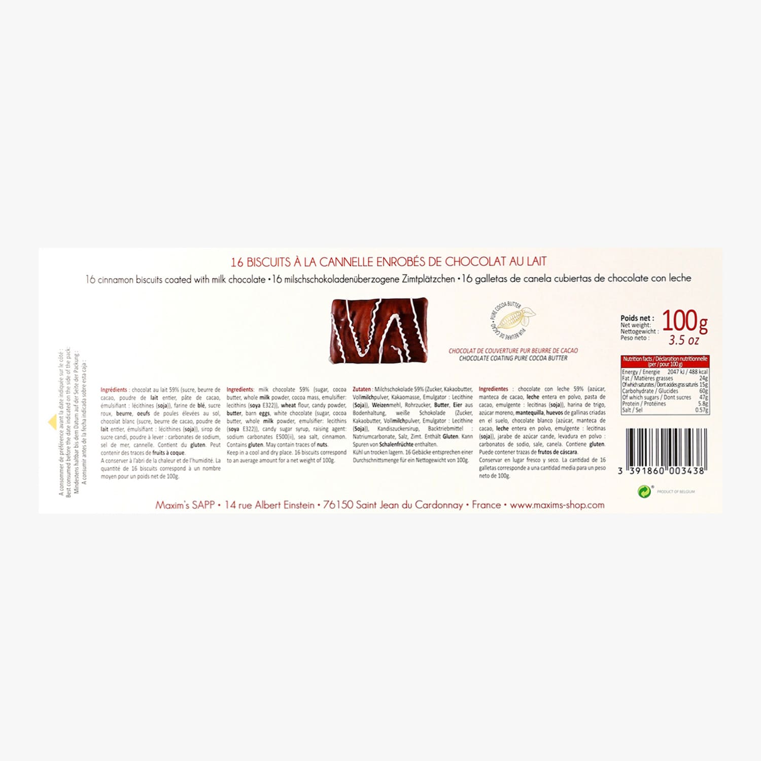 16 biscuits à la cannelle enrobés de chocolat au lait