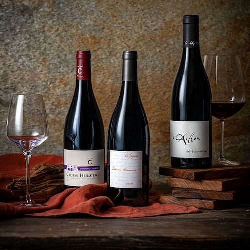 Notre sélection fait la part belle aux appellations incontournables des vins du Rhône, telles que Côte Rôtie, Condrieu, Cornas ou Crozes-Hermitage.