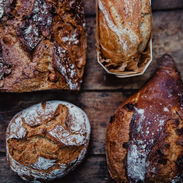 Le pain aux figues et miel de châtaignier ainsi que le pain noix, cranberries et raisins ont tous deux été réalisés à partir des farines françaises de blé de petit épeautre.
