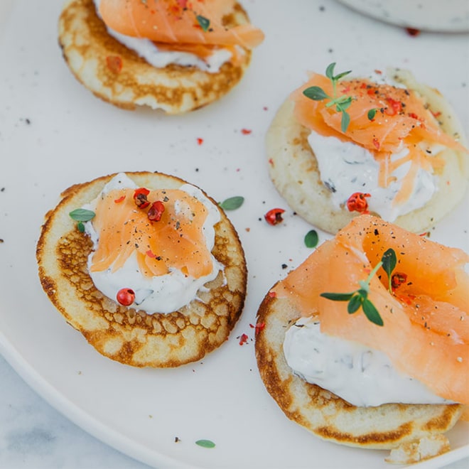Truffe, corail d’oursin, crabe ou caviar subliment nos taramas. Aneth, sarrasin et graines de pavot agrémentent les blinis qui les accompagnent.
