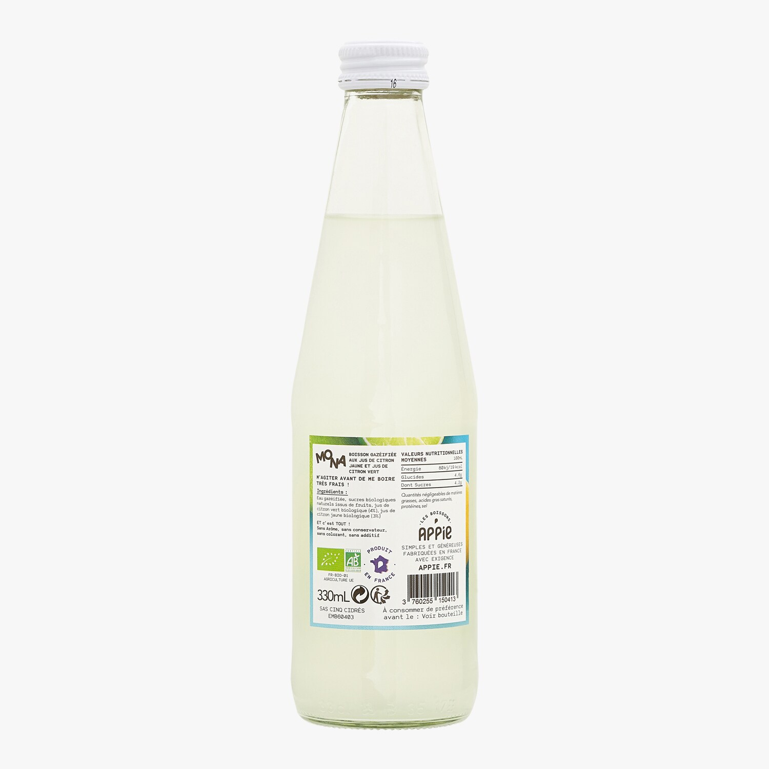 Boisson gazéifiée aux jus de citron jaune et jus de citron vert