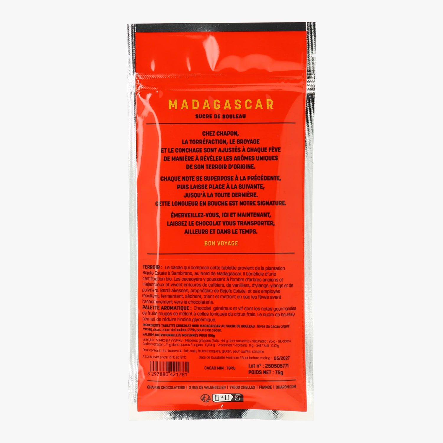 Tablette chocolat noir au sucre de bouleau - Madagascar Chapon
