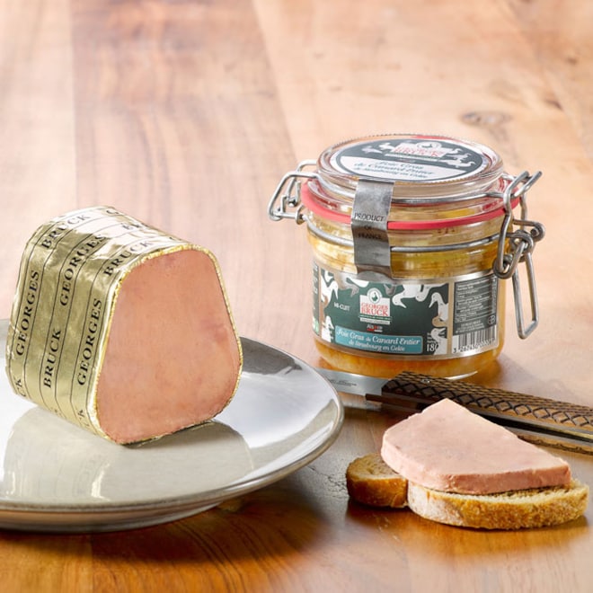 La sélection rigoureuse des matières premières est pour beaucoup dans cette excellence reconnue par les gourmets des quatre coins du monde. À cette exigence s’ajoute un secret de famille jalousement gardé avec un mélange d’épices faisant d’un foie gras un met d'exception. Ces douze épices dont la nature est aussi secrète que les proportions font d’un foie gras de Strasbourg un foie gras Bruck. Véritable créateur de foies gras, Georges Bruck veille sur chaque étape allant du choix des foies à la mise en bocaux. Foies gras appréciés par la restauration haut de gamme et de nombreux particuliers, ils offrent des saveurs et des arômes uniques.