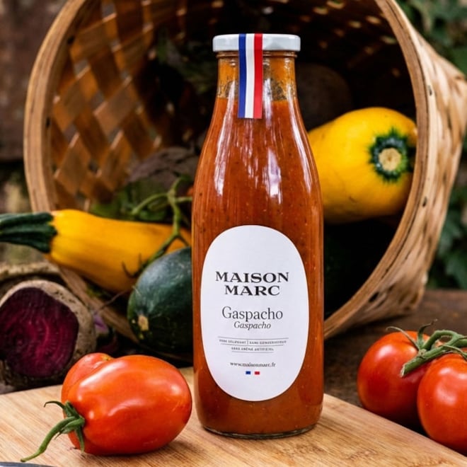 La Maison Marc propose également une gamme de 8 veloutés au vrai goût de légumes frais, cultivés sans herbicide, sans insecticide et conditionnés sans conservateur.