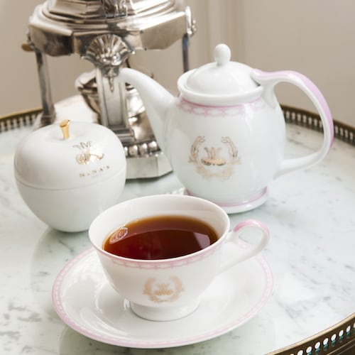 La formule originale du thé Marie-Antoinette, gardée secrète depuis 1788 est jalousement préservée par la maison Nina’s. Respectée à la lettre, cette recette historique est un savant mélange de pommes fraîches cueillies à la main et de précieux pétales de roses.