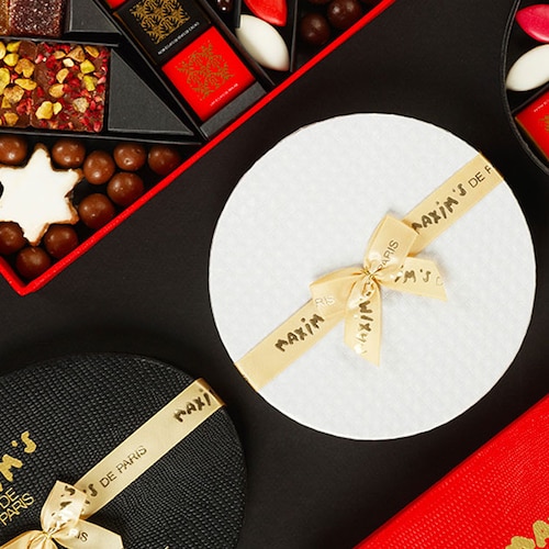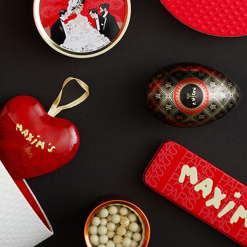 Palets fondants au chocolat noir, ganache montée au lait, kougelhopf lait au gianduja et feuilletine, rocher, chocolat au lait praliné noisettes… Cette année, pour les fêtes de fin d’année, Maxim's nous régale une fois encore avec ce joli coffret en métal renfermant ses meilleures spécialités.
