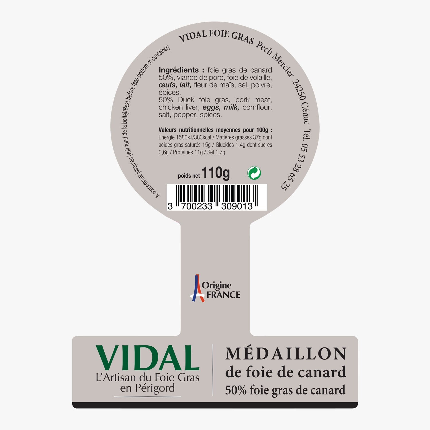 Médaillon foie gras de canard, 50% foie gras de canard Vidal