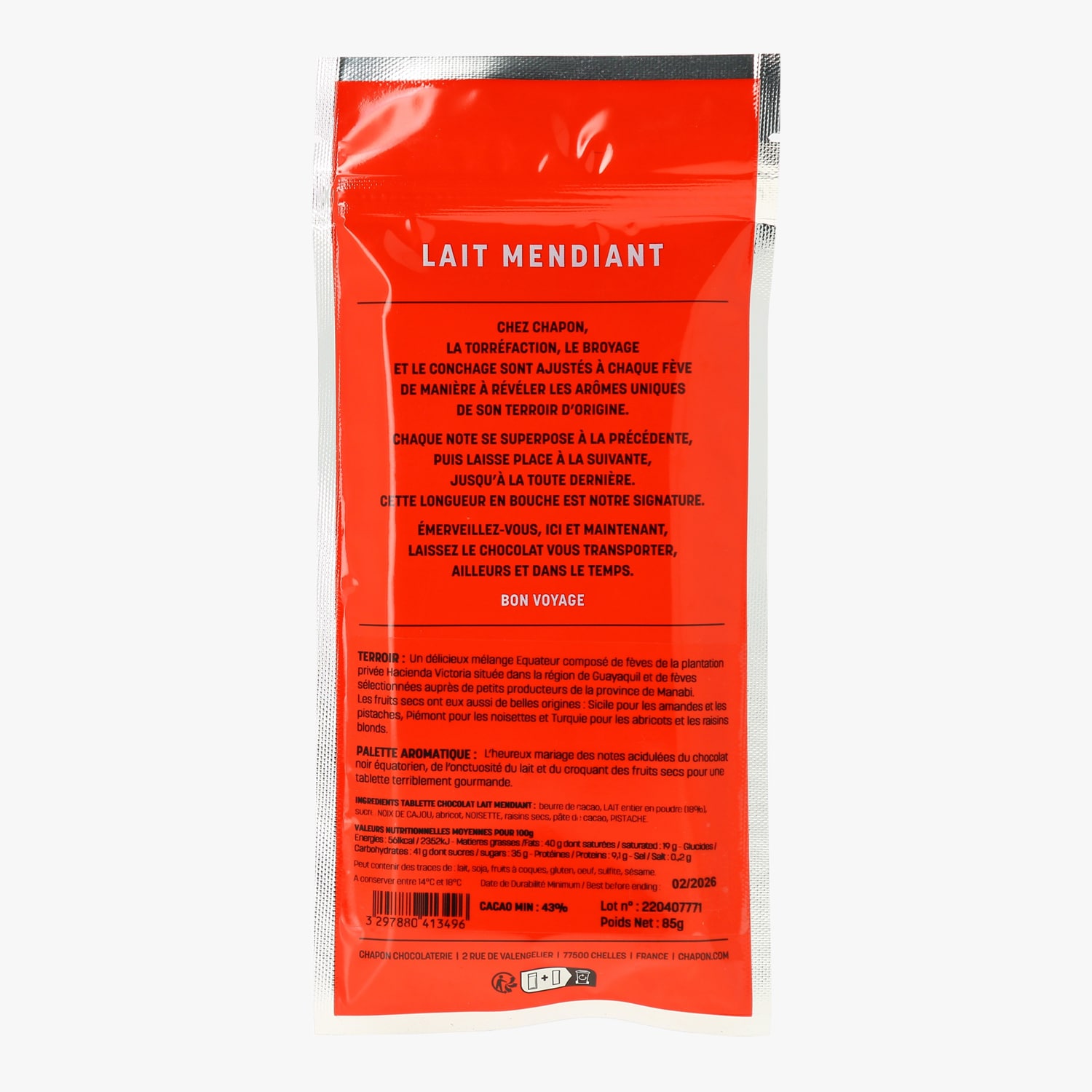 Tablette chocolat au lait mendiant 85 g