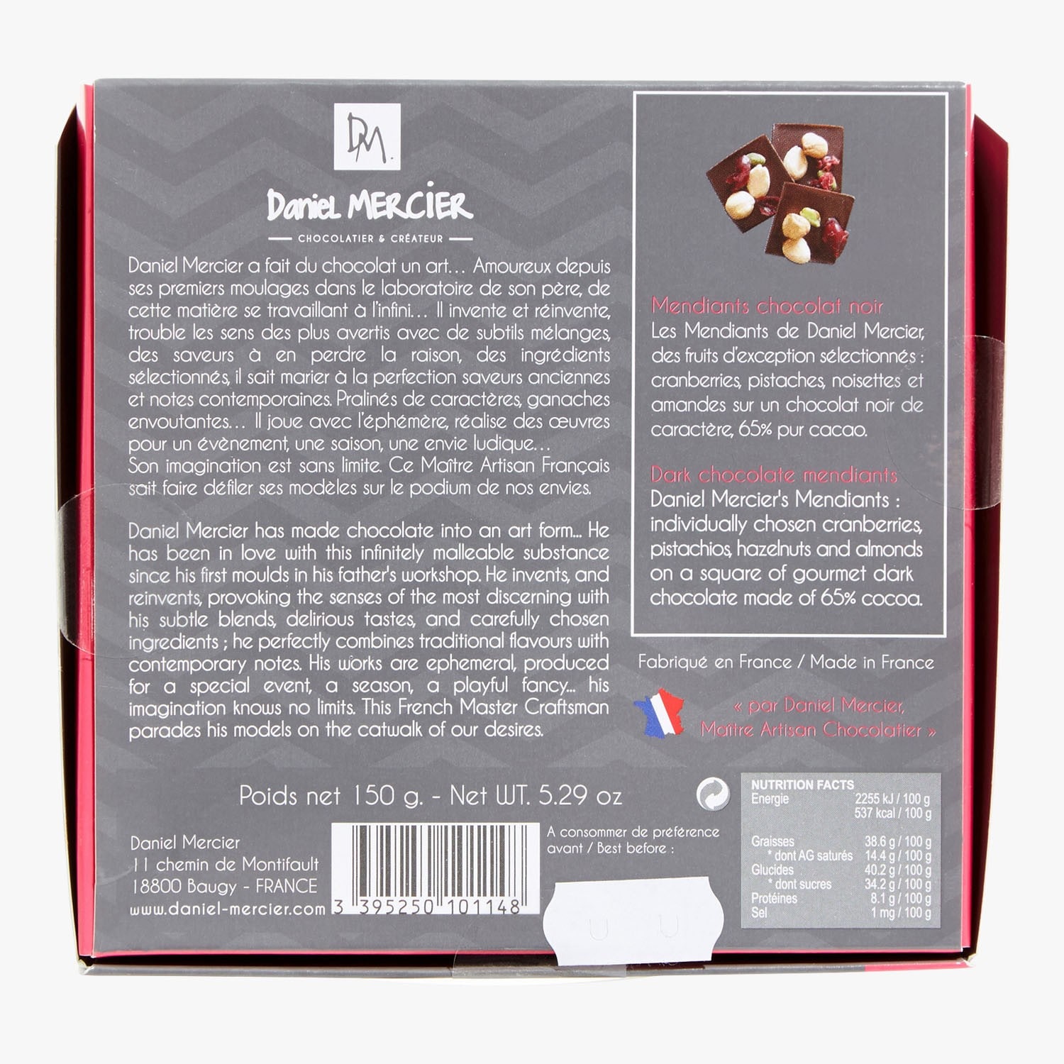 Mendiants chocolat noir Maison Mercier