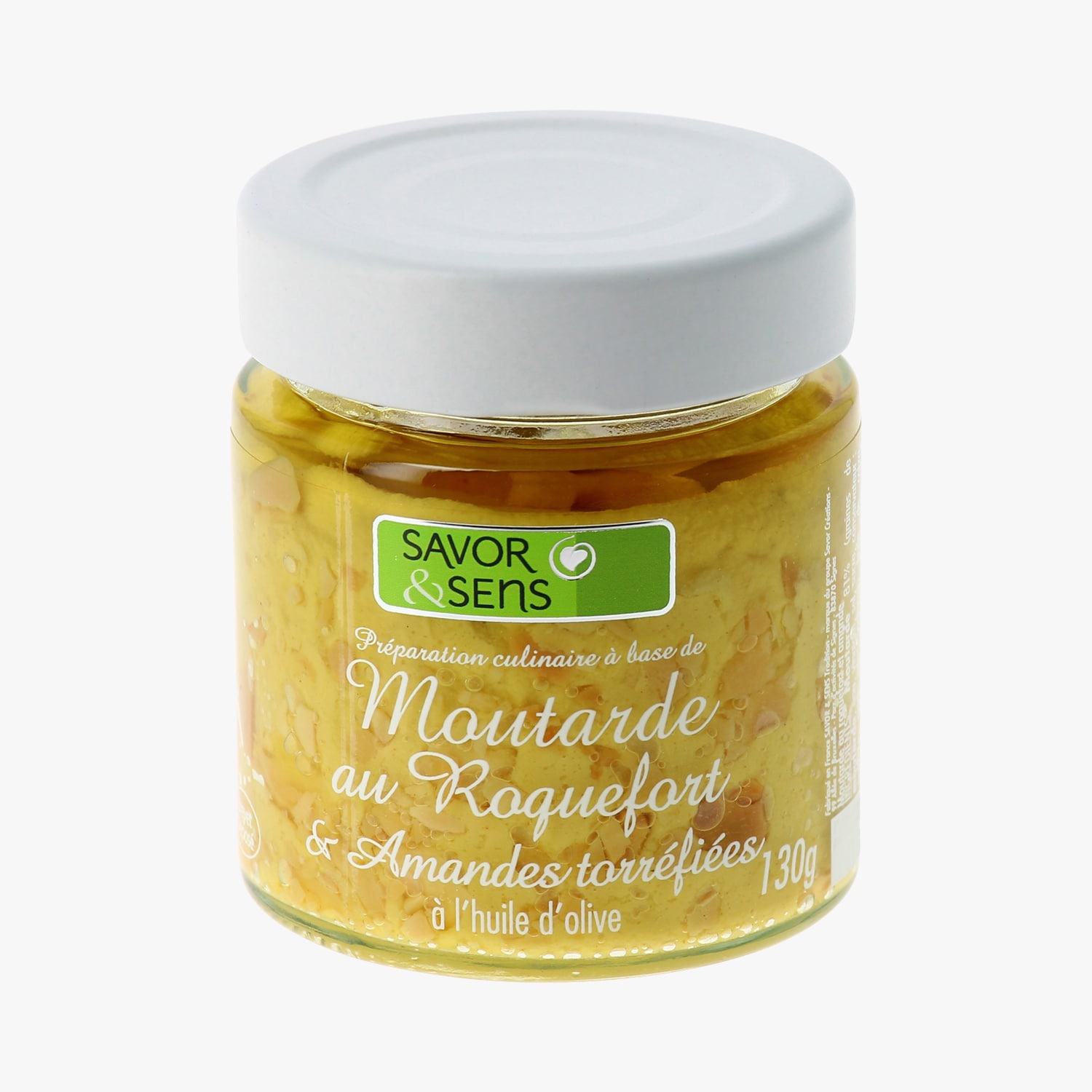 Préparation culinaire à base de moutarde au roquefort et amandes torréfiées à l'huile d'olive