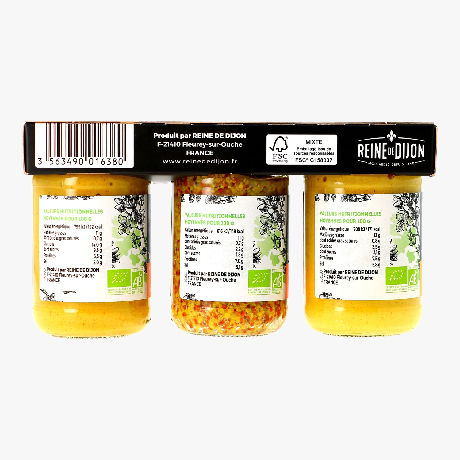 Assortiment de 3 moutardes biologiques