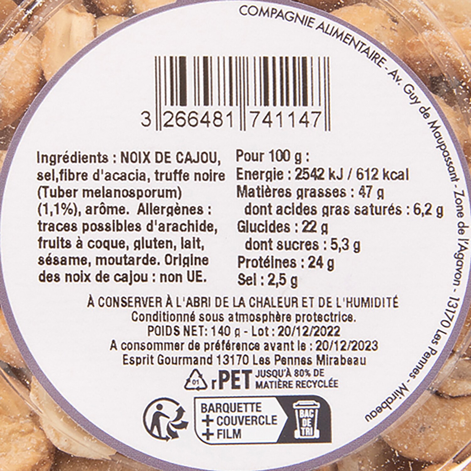 Noix de cajou à la truffe noire tuber melanosporum 1 % Maison Naja