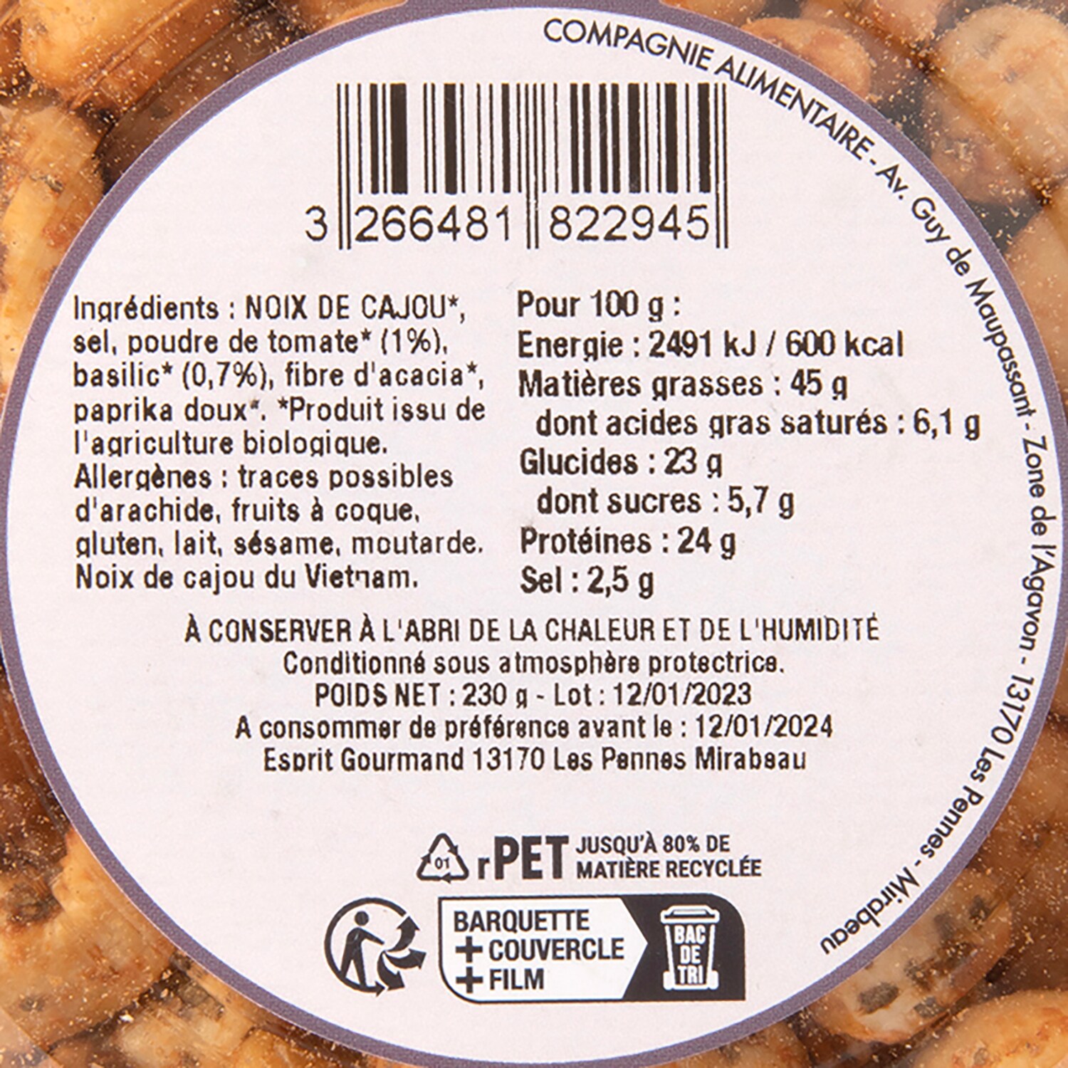 Noix de cajou bio salé tomate et basilic Maison Naja