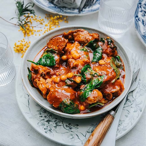 Débutez votre repas avec une salade de crevettes et de chou blanc, deux ingrédients complémentaires qui forment une belle association gustative. La fraicheur de cette entrée repose sur la sauce façon labneh. Cet ingrédient présente une texture similaire à celle d’un yaourt ce qui lui procure une véritable onctuosité. Poursuivez votre repas avec une épaule d’agneau fondante que les équipes de La Grande Epicerie de Paris agrémentent d’un mélange de 7 épices, comme un écho à la chaleur et au caractère des plats orientaux. Ils se sont intéressés à la complexité de chaque épice, à leurs spécificités bien distinctes avant d’élaborer un mélange unique. Ce dernier repose sur l’équilibre des saveurs, un travail minutieux pour lequel nos chefs se sont passionnés. Ils aiment particulièrement surprendre avec un jeu sur les textures et ont donc sublimé ce plat de quelques pois chiches croustillants. Ces derniers ont été travaillés avec du cumin pour rappeler le mélange d’épices et créer une harmonie en bouche. Pour apporter une touche de fraicheur et de verdure à ce plat riche et gourmand, nos chefs ont ajouté quelques pousses d’épinard. Ils vous recommandent d’accompagner votre plat d’une salade d’épeautre aux pois chiches, à la coriandre et au citron. Cette garniture oscille merveilleusement entre légèreté et caractère pour vous offrir un moment de dégustation unique. Concluez votre repas par un roulé aussi moelleux que délicieux, alliant la générosité des dattes et le croquant des pistaches. Ces dernières s’accordent parfaitement à la crème pâtissière à la fleur d’oranger, touche finale de cette création !