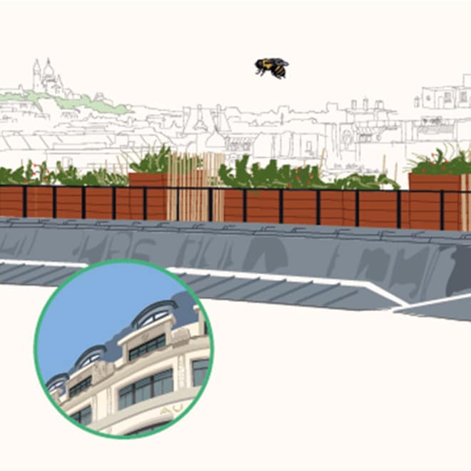 Afin de participer au maintien de la biodiversité, le Groupe Le Bon Marché crée en 2017 un potager de 350m2 sur les toits de ses bâtiments. Les récoltes d’herbes aromatiques, de fleurs comestibles et de légumes sont utilisées directement par les chefs de notre restaurant La Table, et permettent ainsi de faire découvrir à nos clients des plats tout en fraicheur.