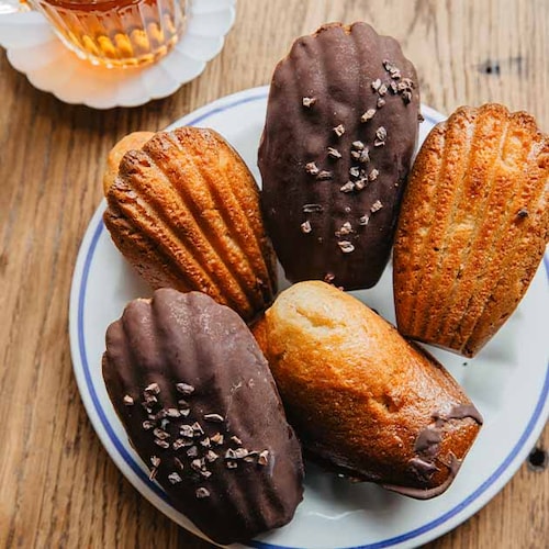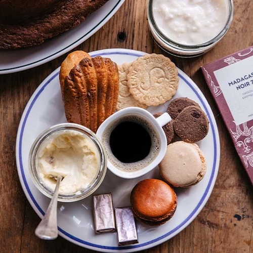 Les emblématiques biscuits roses de Reims de la Maison Fossier insuffleront une touche vibrante et délicate. Intégrez à votre sélection les madeleines moelleuses de la célèbre Biscuiterie Jeannette, ainsi que les babas au rhum de Saint-Malo, parfumés au rhum de Marie-Galante et à la vanille. Enfin, les financiers, ces petits gâteaux aux intenses notes d'amande, apporteront une touche de raffinement subtil à l'ensemble de votre composition.