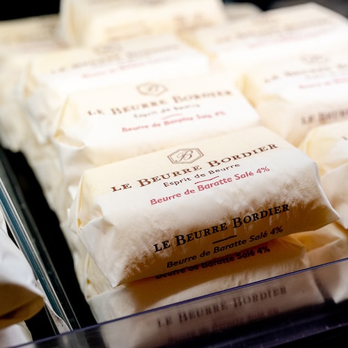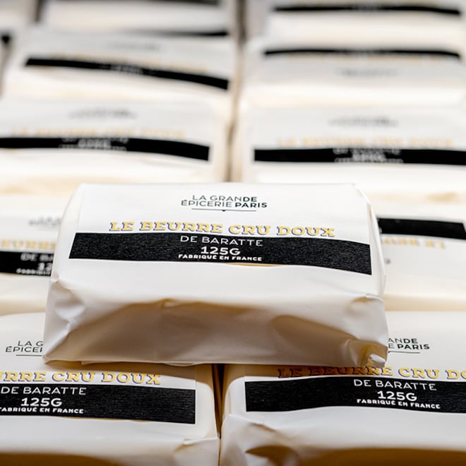 Avec 150 références, notre cave à beurres devrait ravir toutes les curiosités. Partenaire de La Grande Épicerie de Paris depuis 15 ans, la maison malouine Bordier collecte un lait local pour baratter un beurre décliné en nombreux parfums. Dans nos rayons, on retrouve par exemple ses beurres à l’ail et aux fines herbes, à la vanille de Madagascar, au chocolat ou encore au piment d’Espelette.