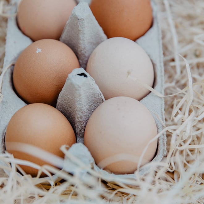 Nos œufs extra-frais sont parfaits à la coque, poché, ou en mayonnaise. Lorsqu’ils ont 10 à 14 jours, ils se dégustent brouillés, cocotte, mollet, au plat. De 15 à 28 jours, ils sont très bons durs, en quiche et en gâteaux.