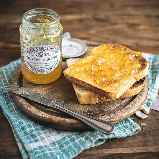 Pour les accompagner, galettes écossaises et biscuits secs au gingembre ou au citron de Walkers s’affichent aux côtés des confitures et marmelades de Wilkin & Sons.