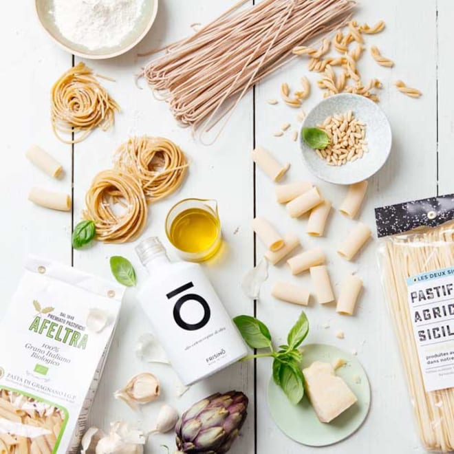 Fabriquées en grande partie en Italie, notre sélection de 250 références de pâtes de blé dur et de pâtes aux œufs est un festival de formes et de textures : orecchiette, farfalle, conchiglioni, parpadelles, …