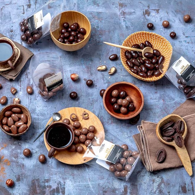 Aux côtés du chocolat à dessert, notre offre est également généreuse en bonbons, truffes en chocolat et coffrets de dégustation.