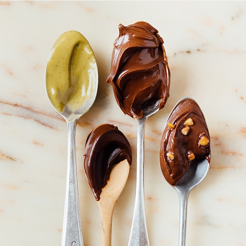Fabriquées à partir d’ingrédients de qualité, comme les noisettes et amandes du Piémont et les pistaches de Sicile, nos pâtes à tartiner conjuguent jeux de textures et de parfums.