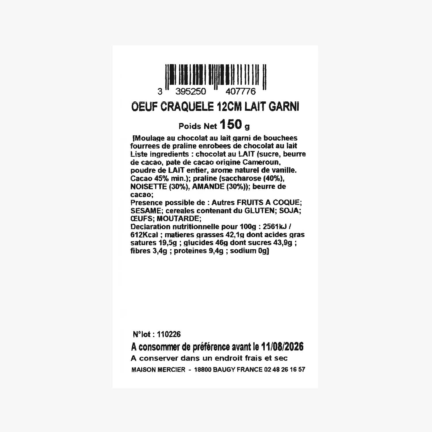 Œuf craquelé chocolat lait garni