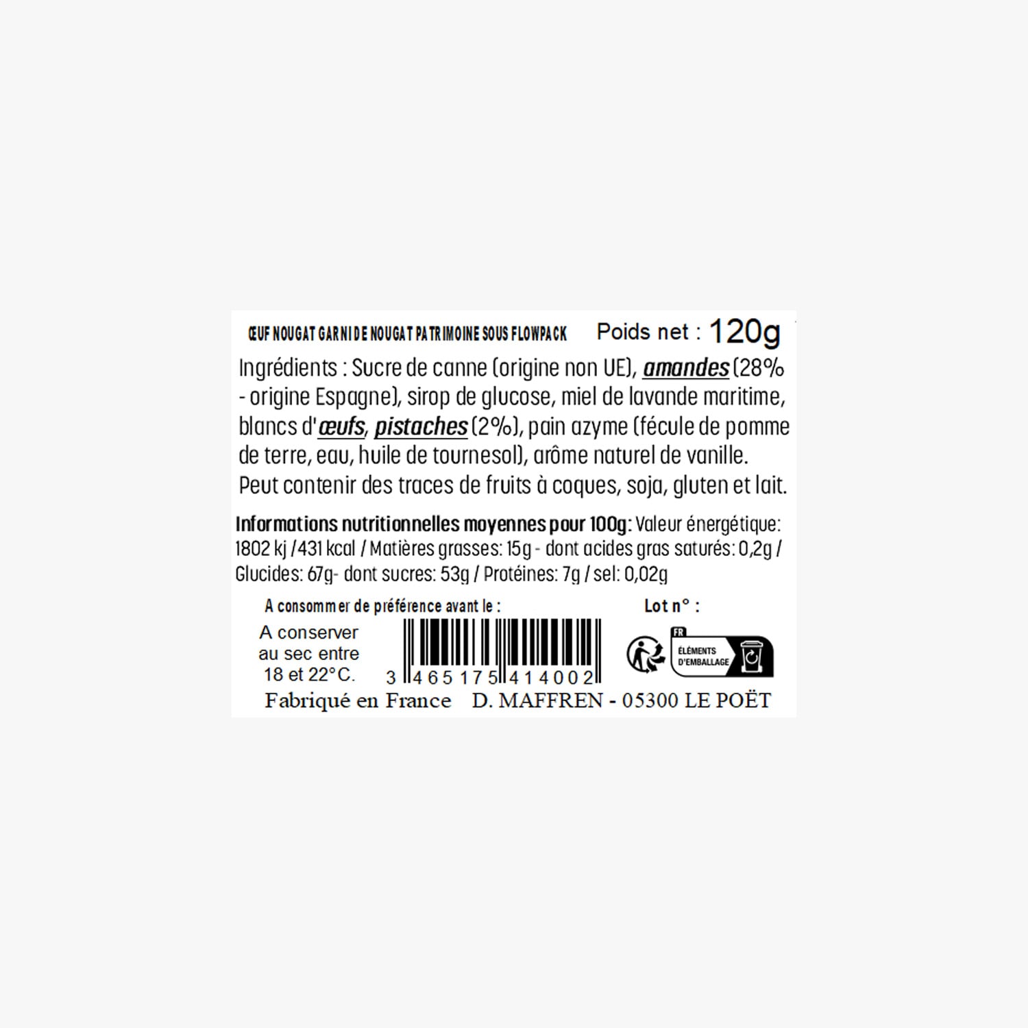 Œuf nougat garni de nougat Maffren