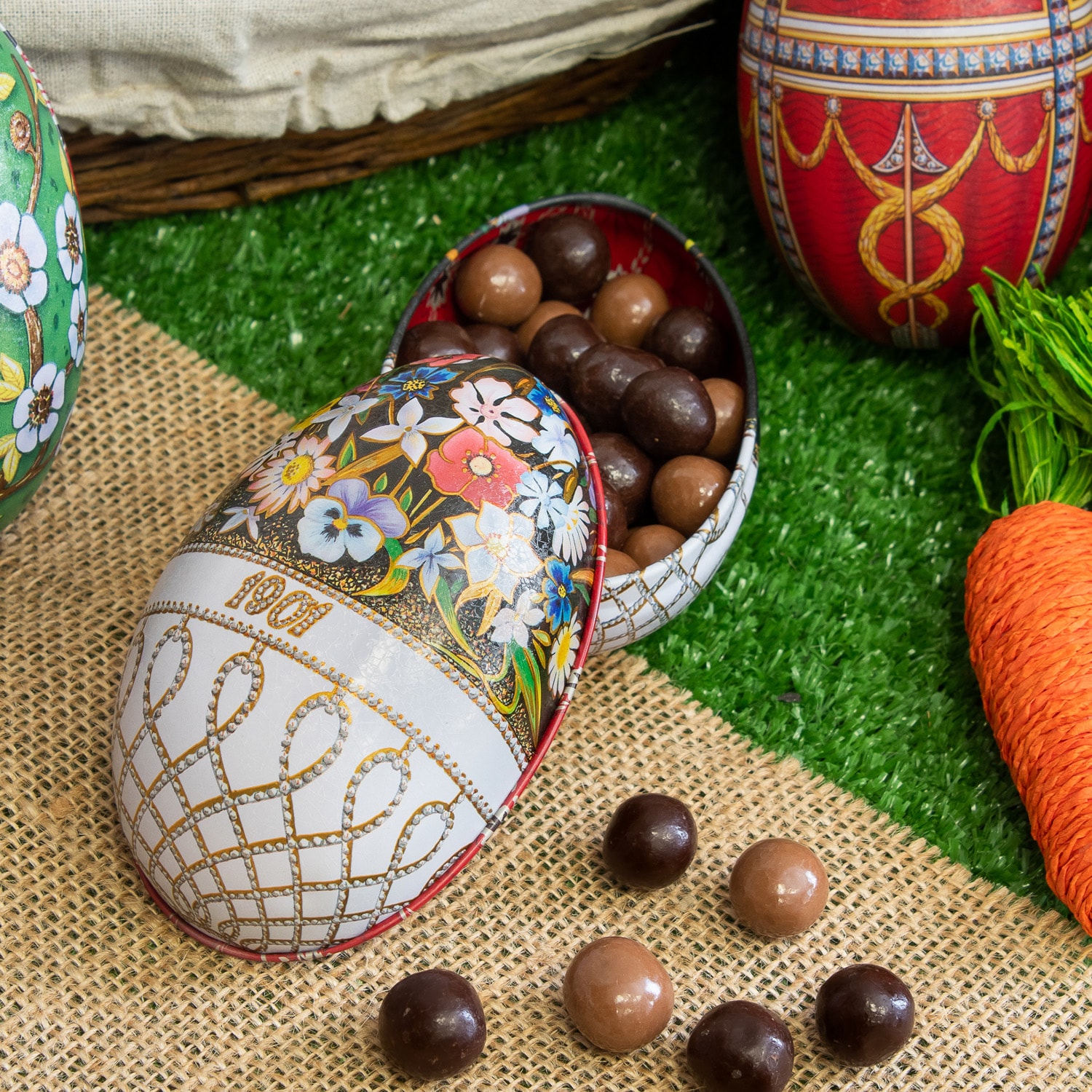 Œufs de Fabergé en chocolat garnis