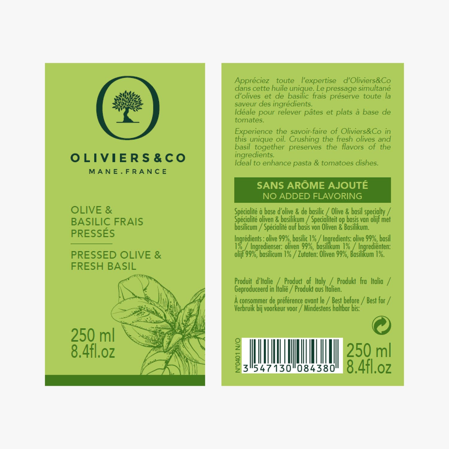 Olive & Basilic frais pressés