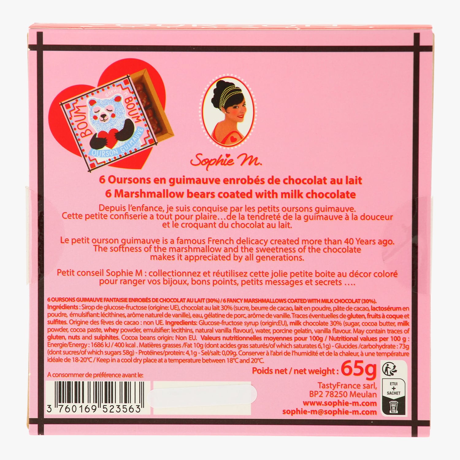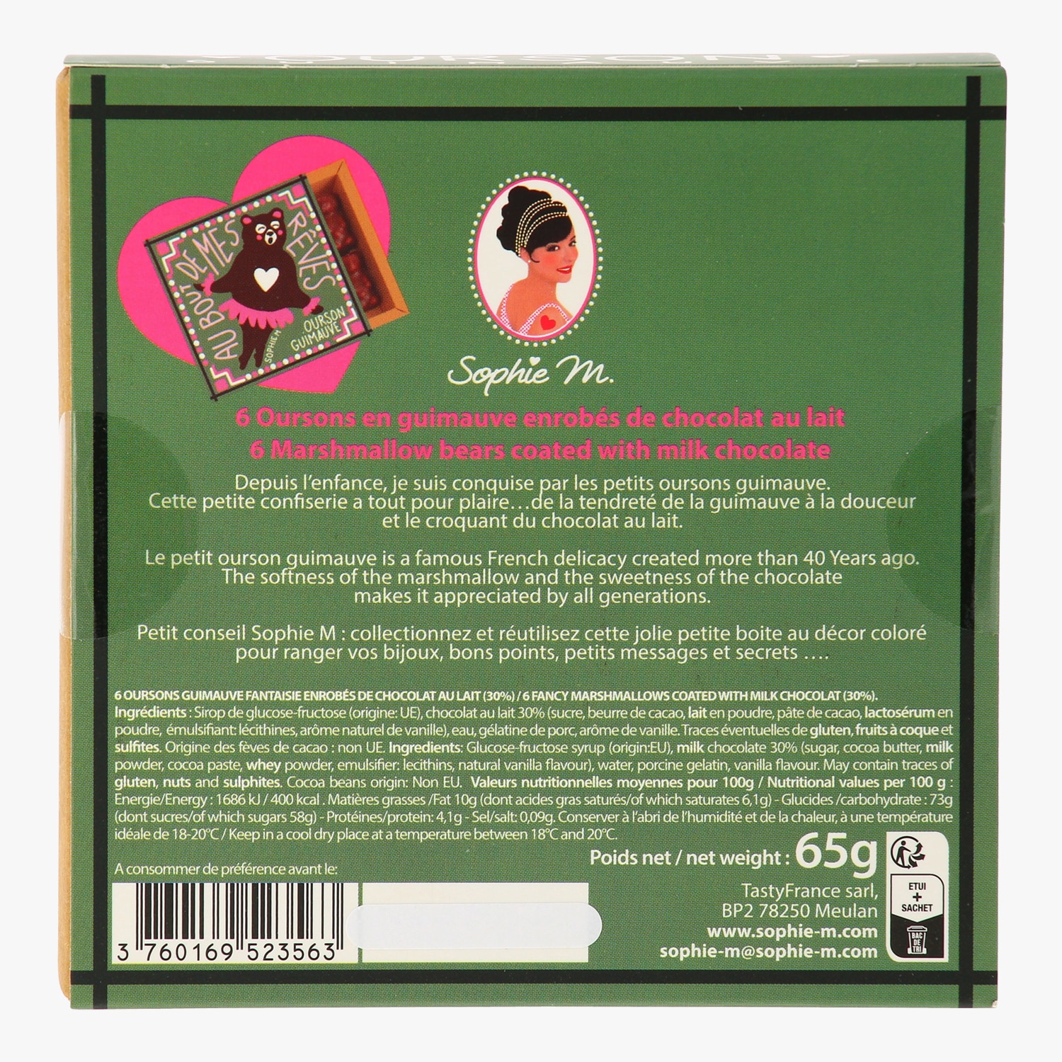 Coffret de 6 oursons en guimauve enrobés de chocolat au lait (30%)