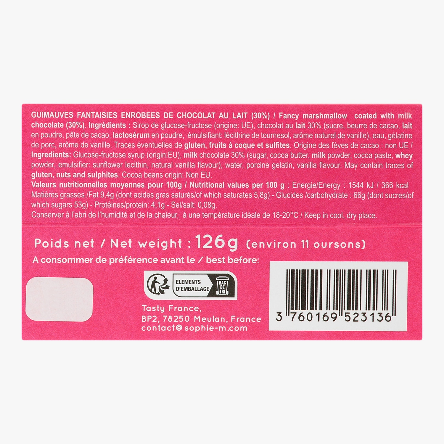 Guimauves fantaisie enrobées de chocolat au lait (30 %)