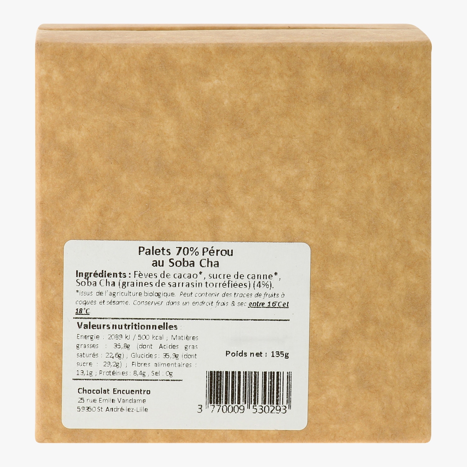 Palets au graines de sarrasin torréfiées, chocolat 70 % Pérou