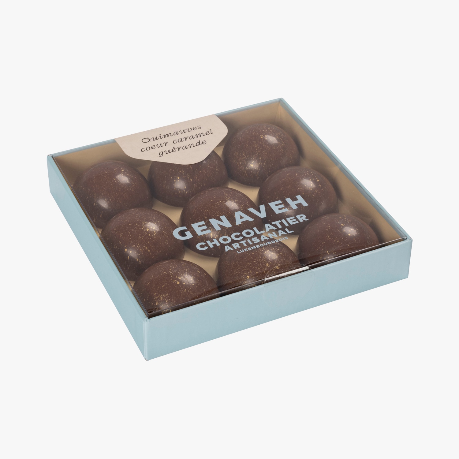 Guimauve à la vanille et caramel au beurre salé enrobé de chocolat noir et au lait