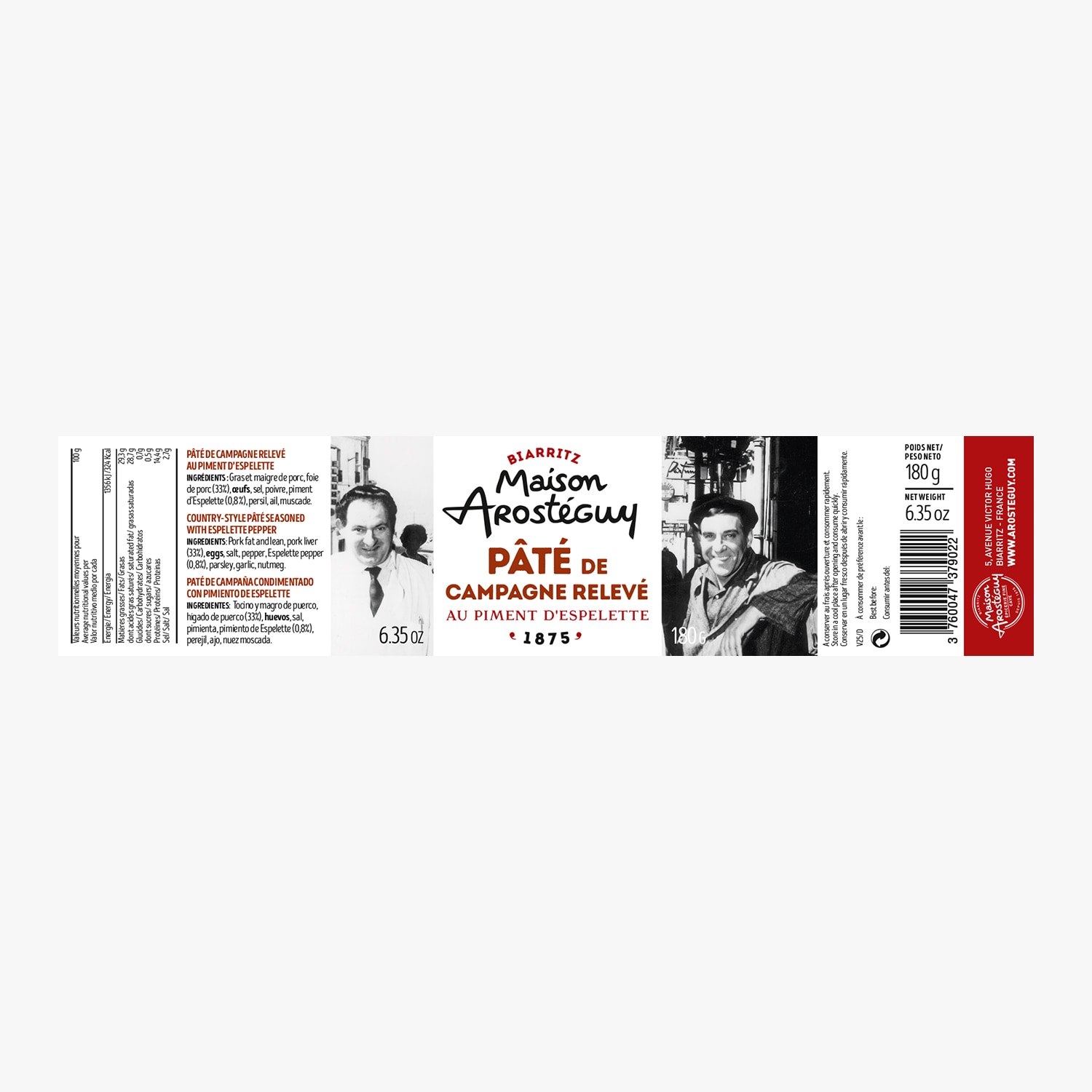 Pâté de campagne relevé au piment d'Espelette, 180 g Maison Arosteguy