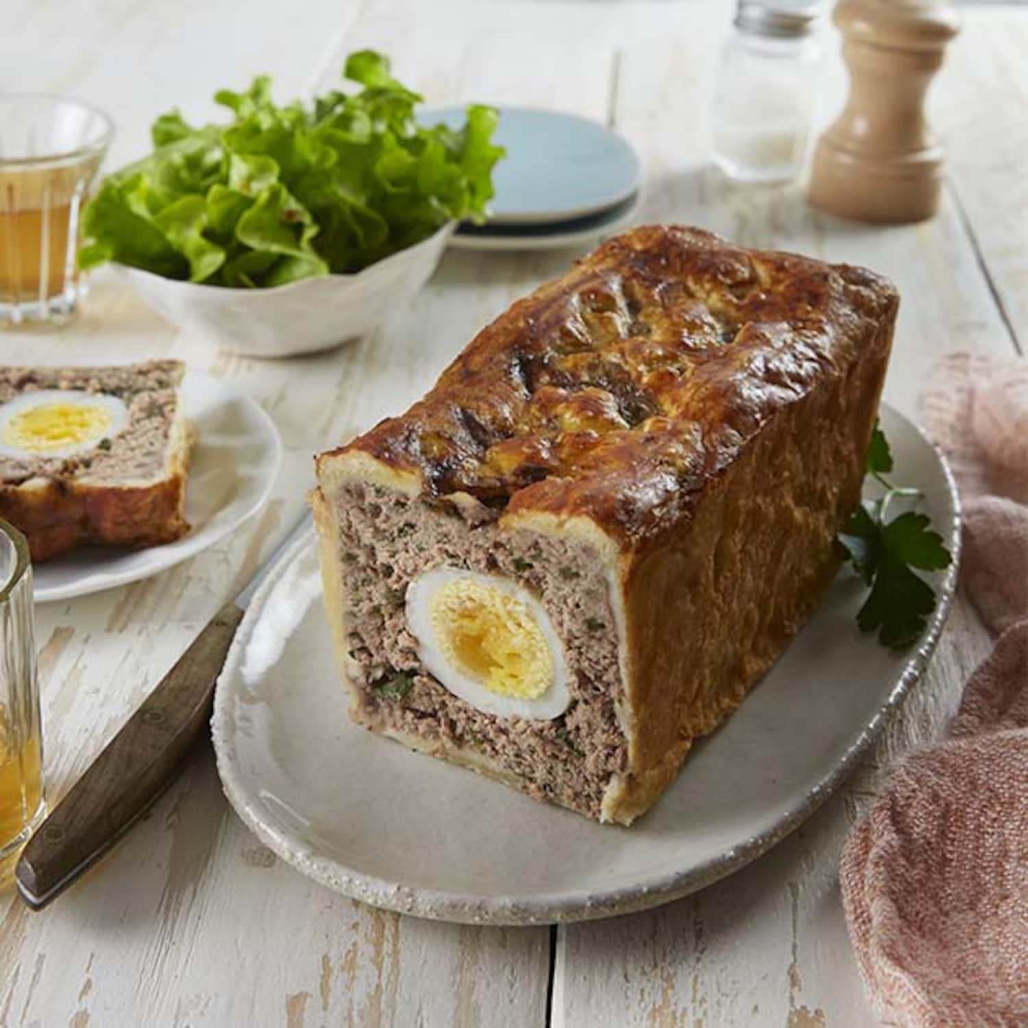 3Badigeonnez le pâté avec 1 jaune d’œuf afin de le dorer. À l’aide d’un couteau, faites quelques entailles sur le dessus de la pâte pour permettre à la vapeur de s’échapper pendant la cuisson. Enfournez pendant 30 min à 200°C, puis laissez refroidir quelques minutes avant de le démouler et de le servir accompagné d’une petite salade verte.