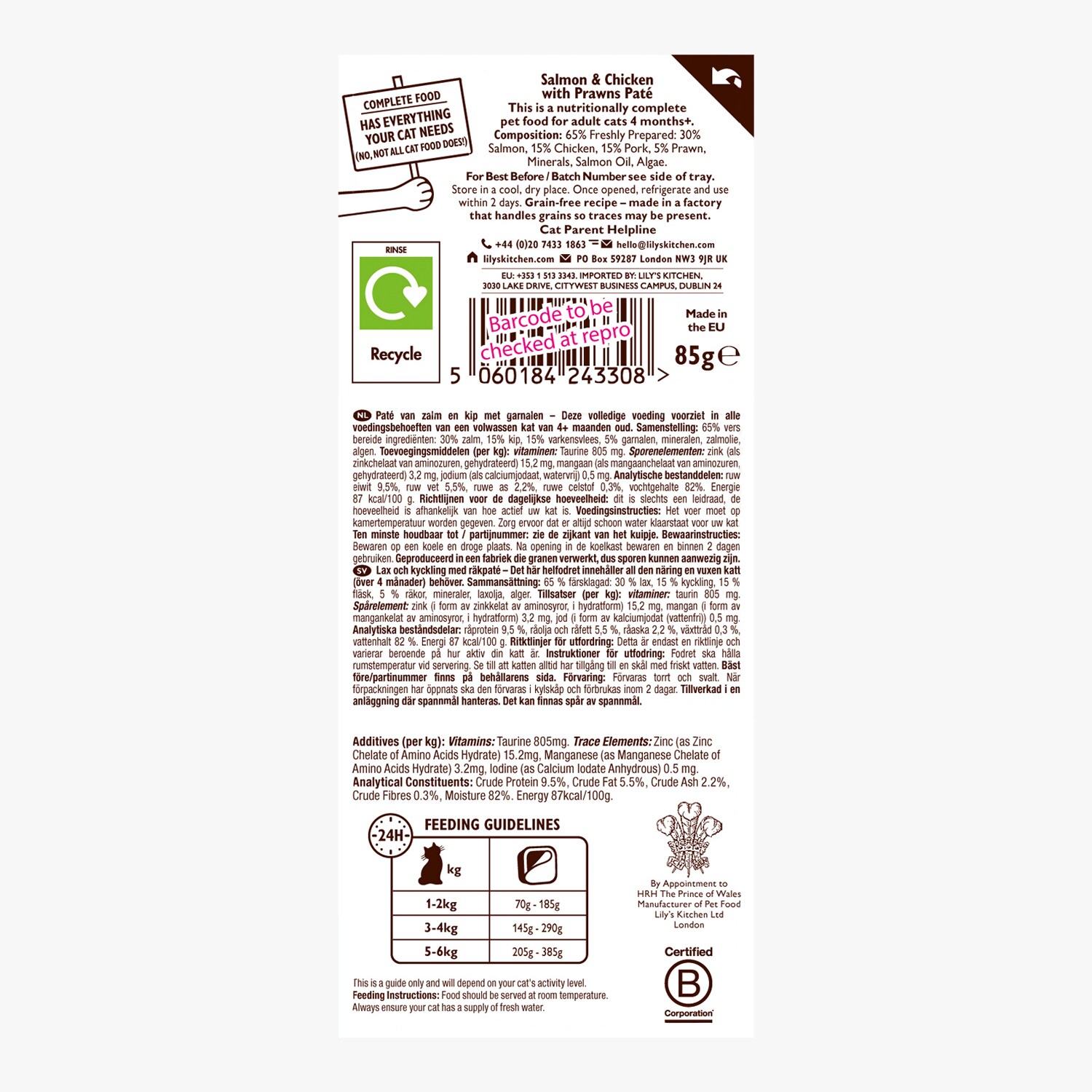 Pâtée pour chat au saumon, au poulet et aux crevettes Lily's Kitchen